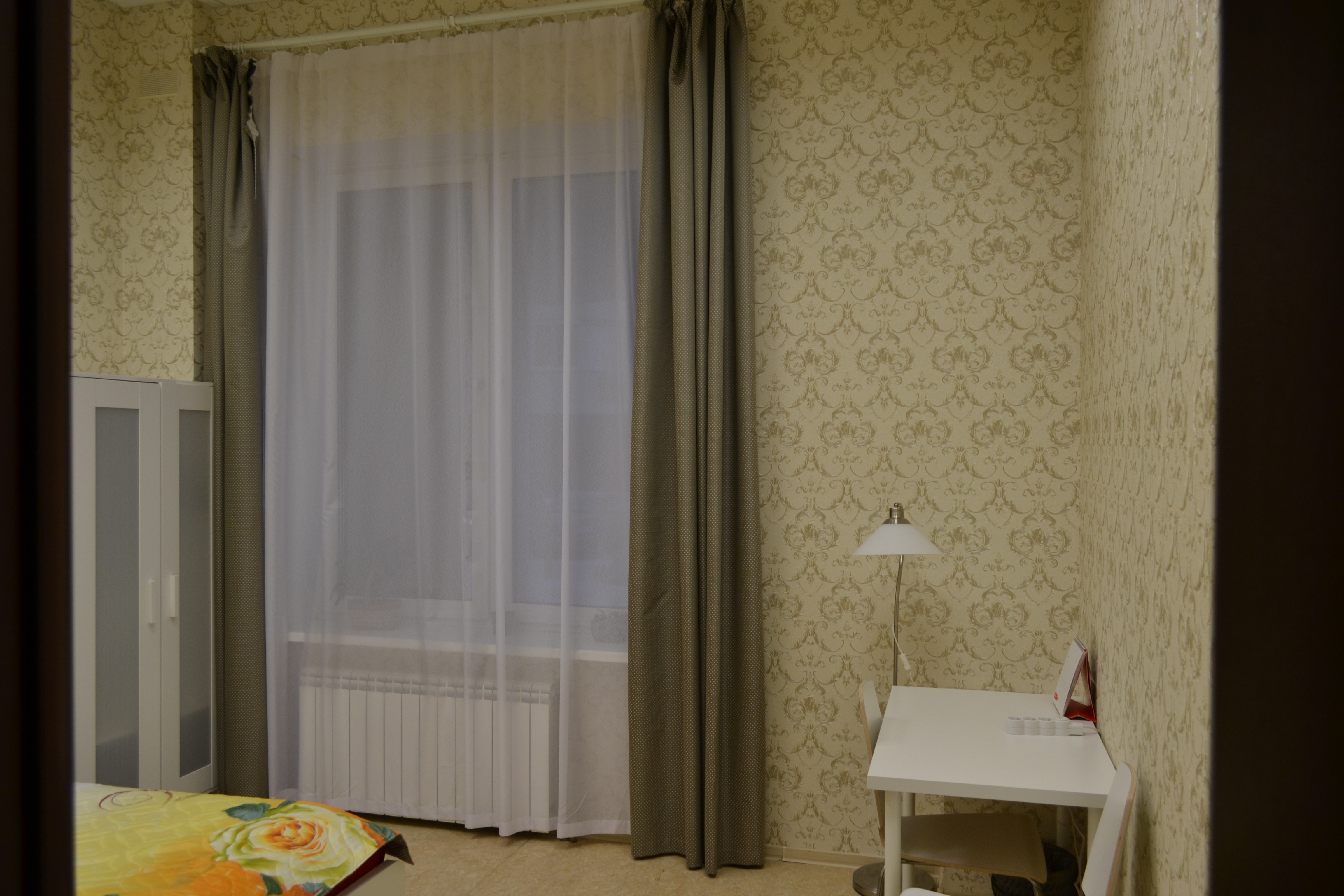 Номер на четверых человек общей площадью 20 кв. м. с высоким потолком и большим остеклением