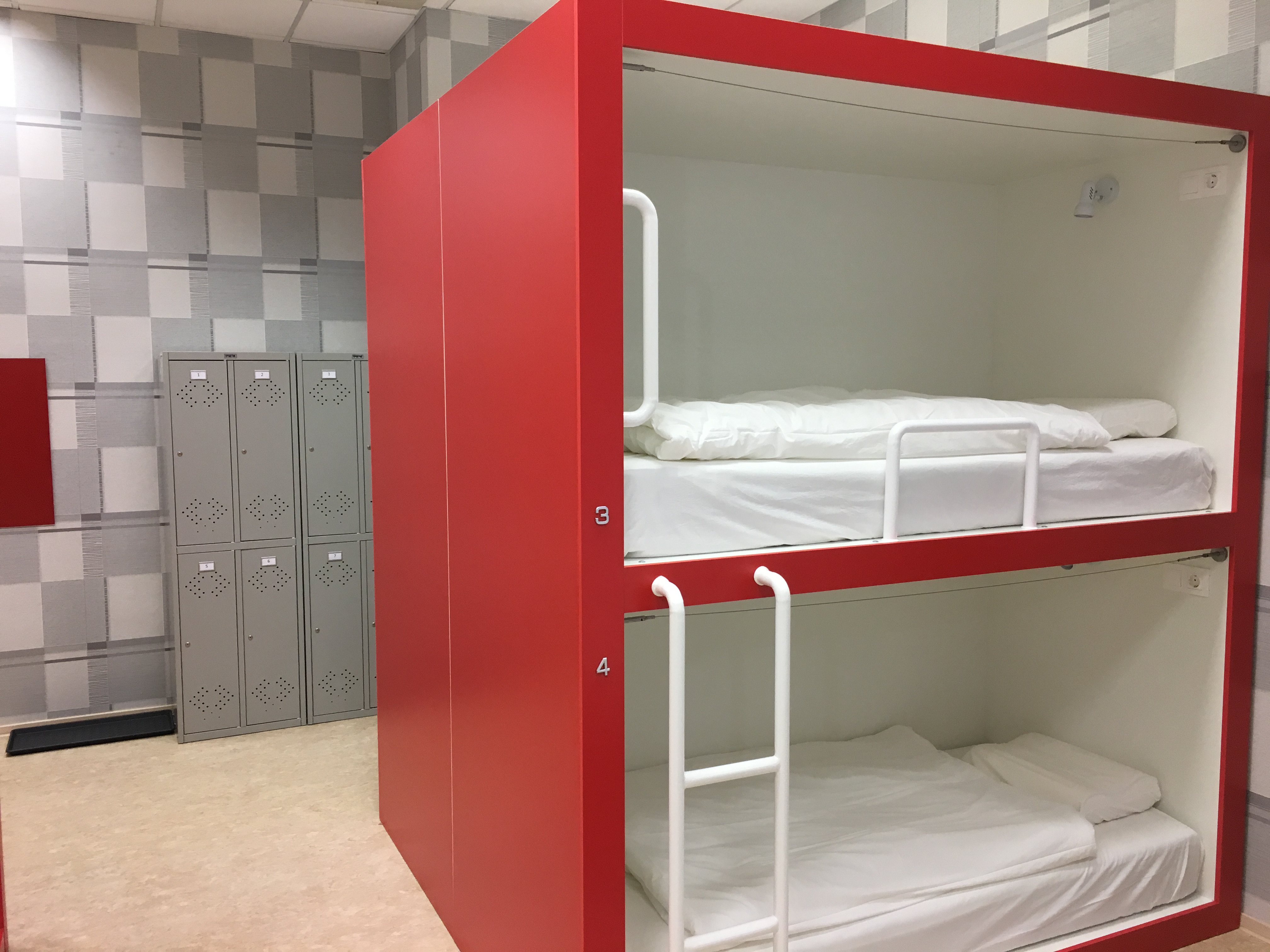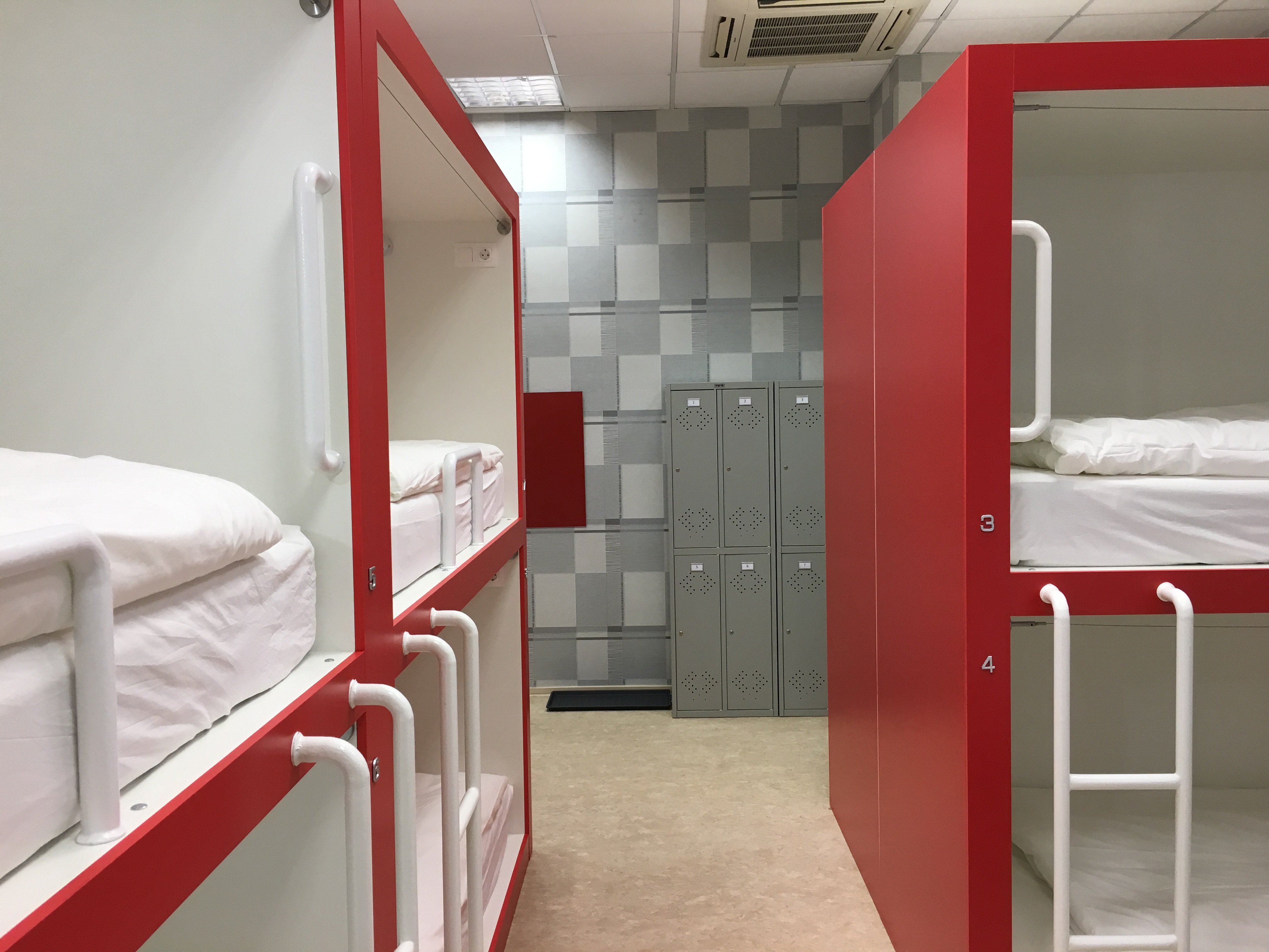 Номера более 20 кв. м. с кроватями - купе (капсулы) вместимостью до 8 человек с индивидуальным светильником, крючками и розеткой 220W