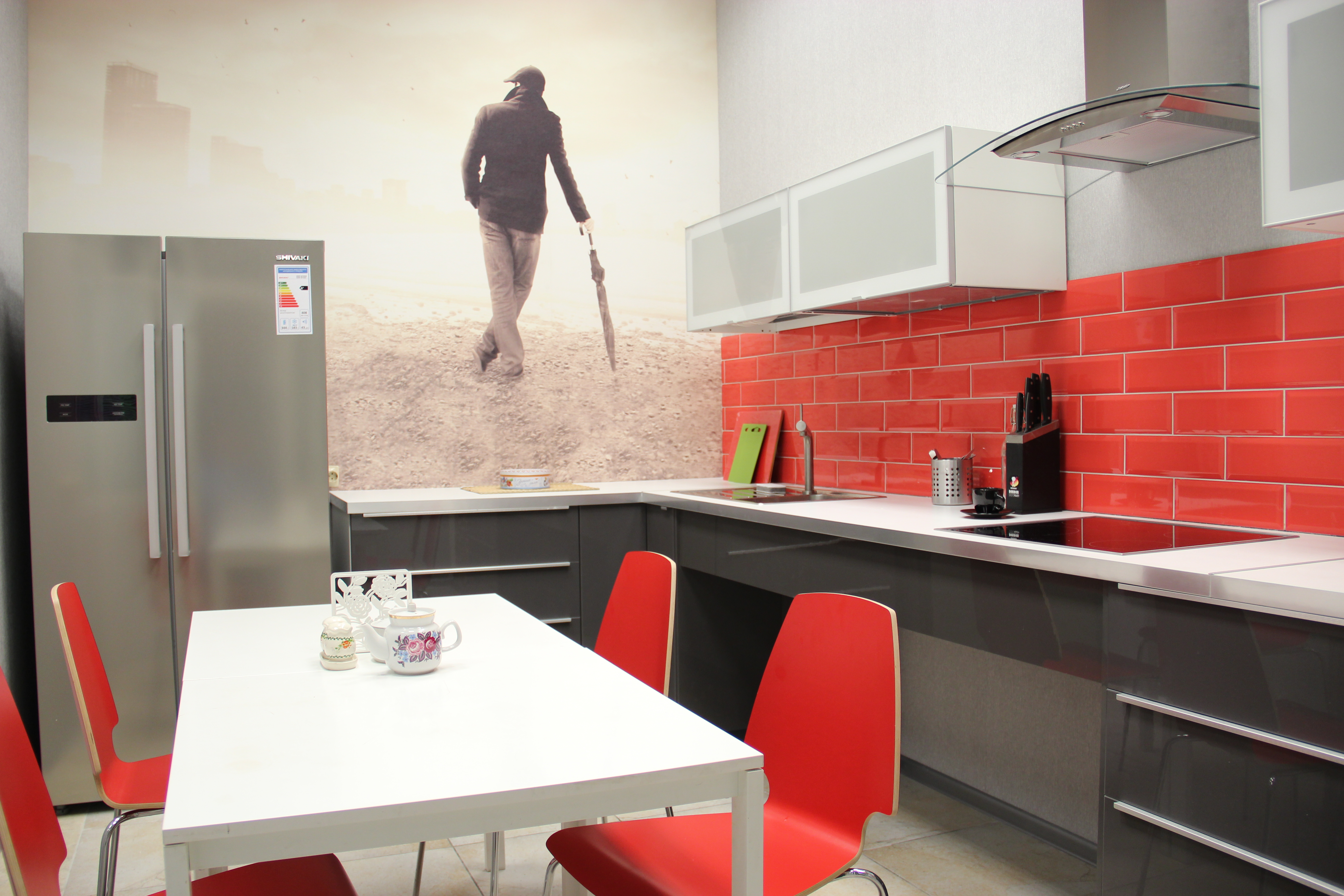 Обустроенная кухня со всем необходимым для хранения продуктов и приготовления домашней пищи